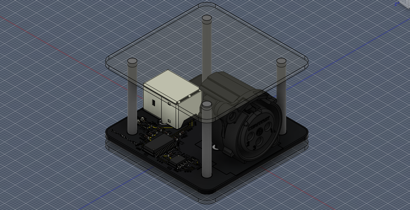 今回は秋月の45基板用アクリルパネルで基板を挟むため、事前にKiCadから基板データを .step ファイルで書きだしイメージを確認した。
