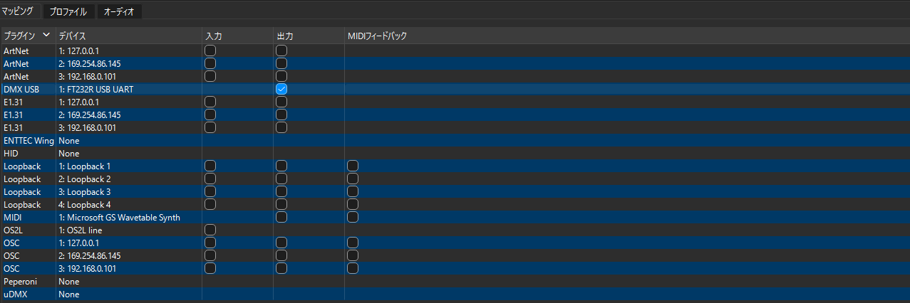 動作確認はQLC+を利用した。